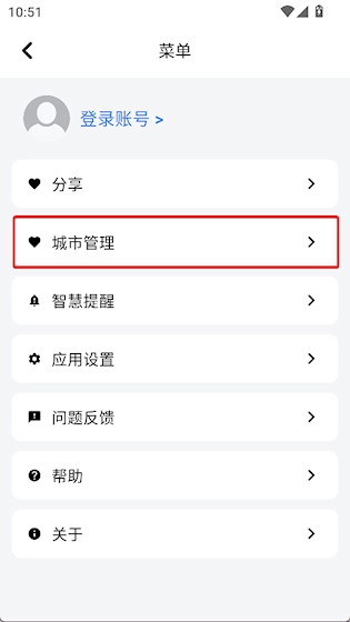 点击城市管理选项