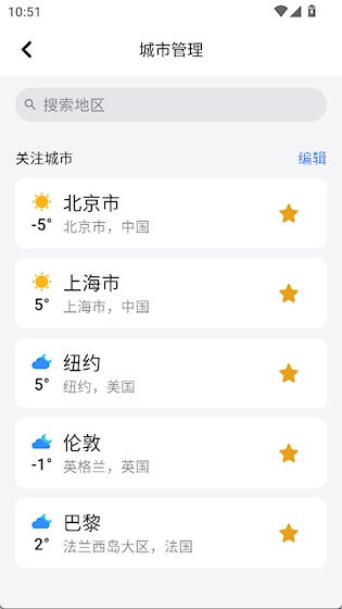 支持多城市管理功能,用户能够自由添加、删除和排序多个关注城市,便于经常出差或关心异地亲友天气情况的人群快速切换查看天气信息。