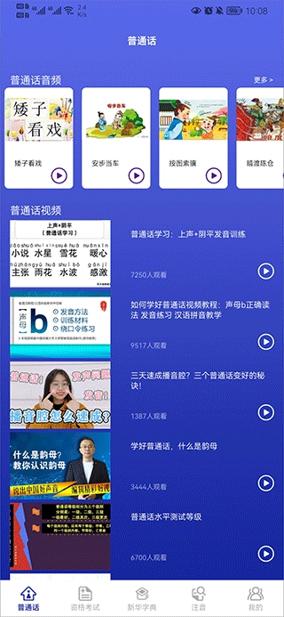 打开终身教育平台的云课堂板块,在普通话学习界面中挑选音频与视频类资源开展学习