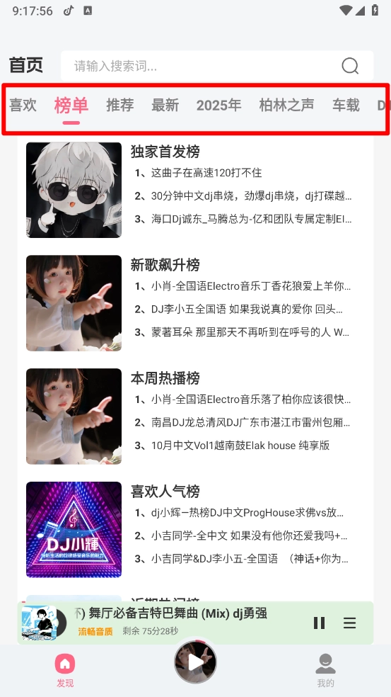 3、网罗全网优质DJ串烧作品,覆盖粤语、英文、重低音、蹦迪、经典老歌、电音、慢摇、中文舞曲等丰富品类,适配日常通勤、派对嗨玩、车载聆听等各类场景需求。