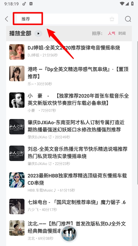 2、也可以点击上方的搜索框,输入关键词来查找自己喜欢的歌曲。