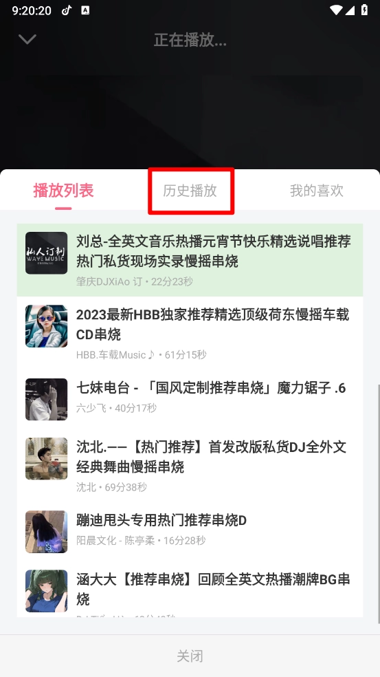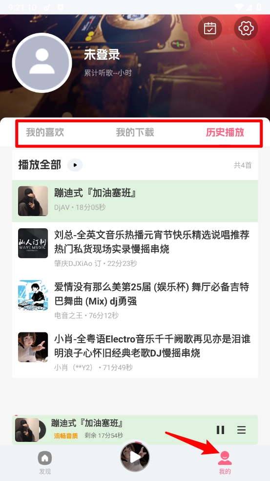 5、软件会记录已播放的歌曲,播放历史界面呈现清晰,点击对应歌曲就能再次播放。