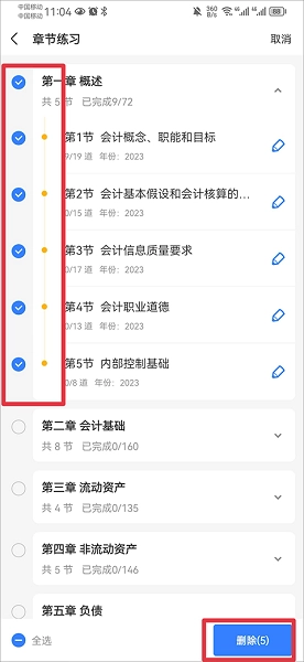 若想删除小节内的做题记录,可在练习题页面点击答题卡。