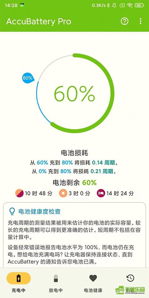 1、充电页面:显示电池健康计算中未包含充电周期的原因。