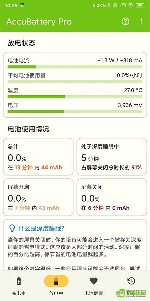 AccuBattery借助电池充电控制器所提供的信息,能够对电池的实际使用状况进行测量。把测量结果与前台运行的应用信息相互结合,就能明确各个应用的耗电量。Android系统计算电池耗电量时,依据的是设备制造商给出的参数,例如CPU的耗电量大小。但实际上,这些计算得出的数值往往存在较大的偏差。