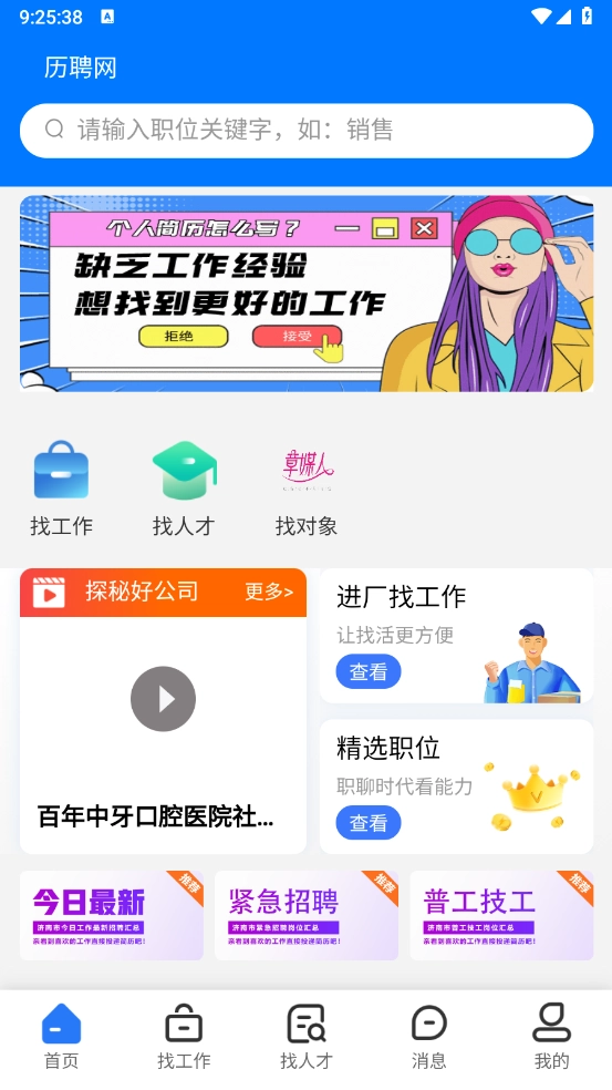 历聘网,作为专业且实用的人力资源服务平台,无论是企业招聘还是个人求职,都能在此获得高效便捷的服务。平台汇聚海量真实岗位与优质企业资源,突破时间与地域的限制,让你随时都能轻松找工作、招人才,更支持一键投递,可直接与HR电话沟通求职事宜。