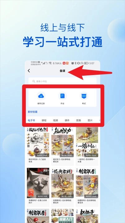 进入备课界面后,能够切换电子书、课件、作业、视频等不同栏目资源,实现一站式学习。