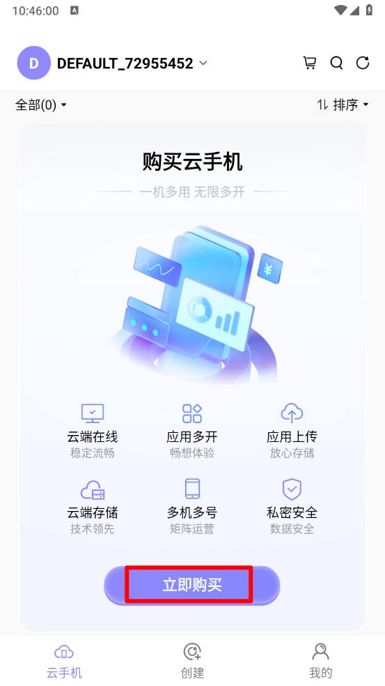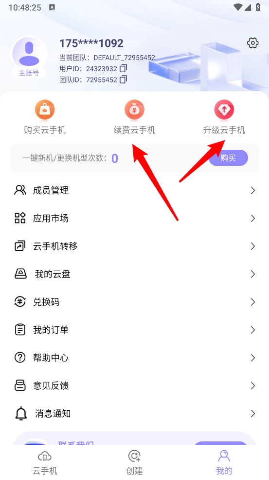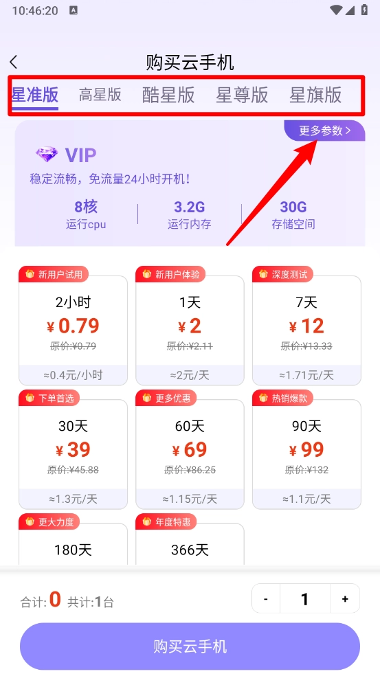 5、完成后选择套餐和台数,点击"购买云手机"。