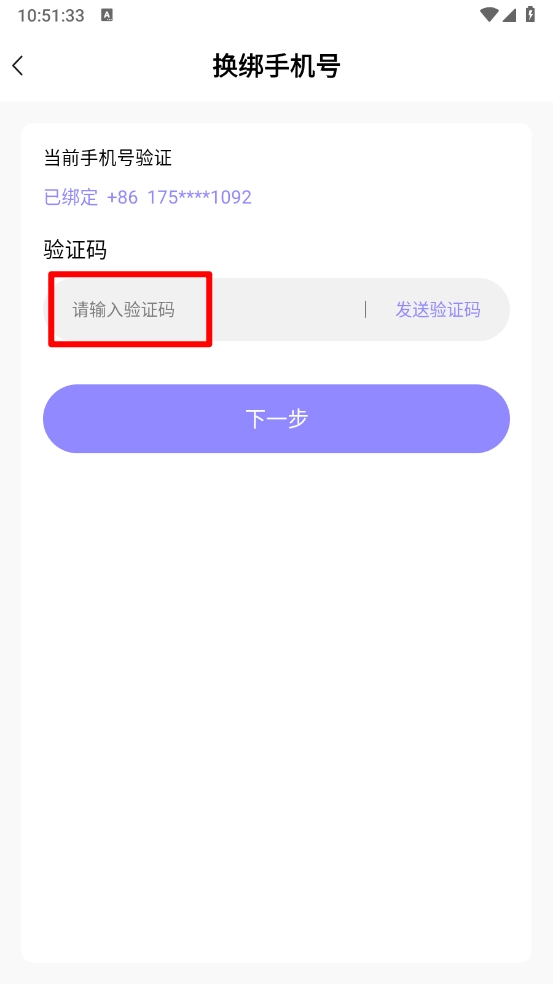 3、最后进入接收验证码的环节,点击“下一步”,按照提示完成换绑操作即可。