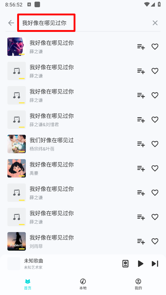 2、如图所示,输入歌名后即可查看多个版本的资源。