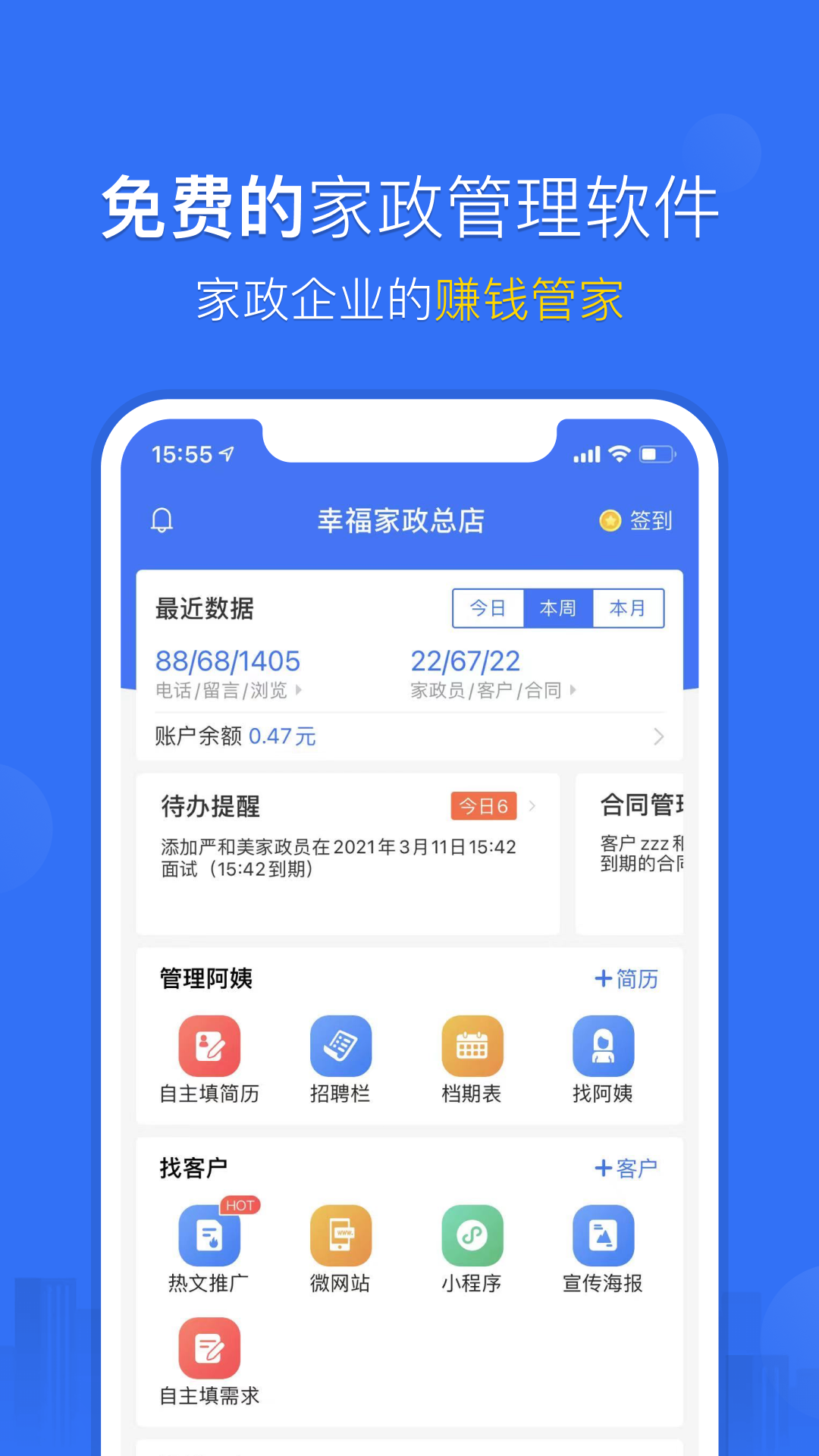 家政加是一款为家政行业量身定制的管理工具,以简约实用的设计理念,助力家政企业达成高效管理与顺畅运营。该软件融合了引流、推广、经营、管理及资源五大核心功能,配备全方位的营销工具、管理应用与培训课程,旨在帮助家政从业者提高工作效率、增加收益、稳固客户关系、拓展行业资源,同时降低经营风险,推动家政企业顺利完成向家政电商的转型。
