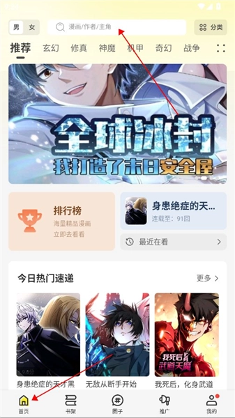 输入你要看的漫画关键词点击搜索。