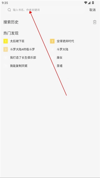 在首页点击上方的搜索框。