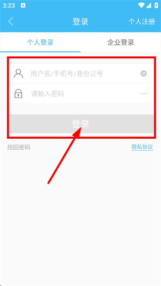 3、在登录页面,输入用户名和密码后,点击登录,完成账号登录操作。