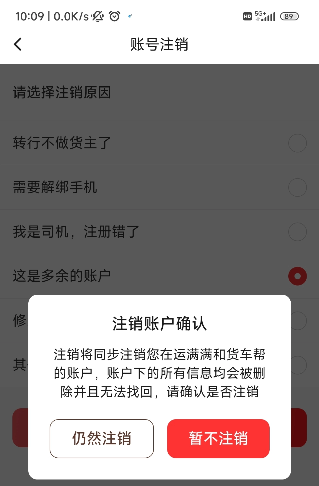 点击【仍然注销】,最后通过短信验证码注销即可