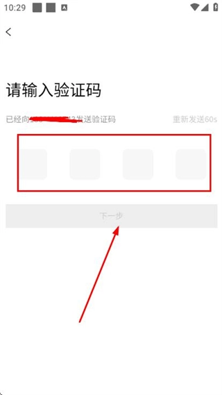 在验证码输入界面填写验证码,点击下一步即可完成登录流程。