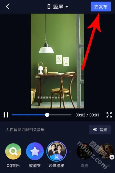 1、在音兔上打开作品编辑界面,然后点击“QQ音乐”