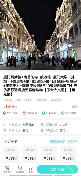3、进入后可以在这里查看这个旅游项目中的详细内容,包括游玩地点、游玩价格等信息。