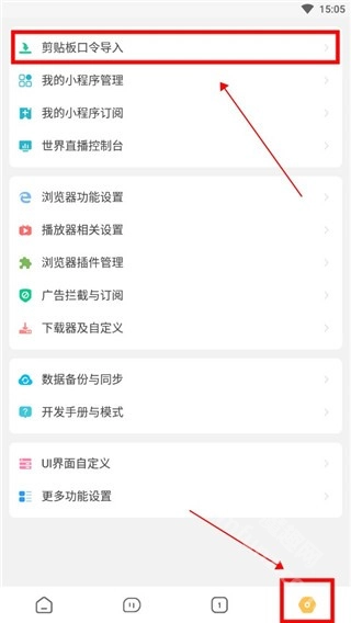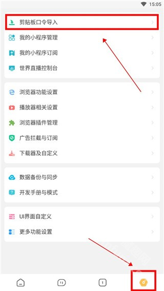 1、打开海阔视界后点击右下角设置,选择【剪辑版口令导入】。