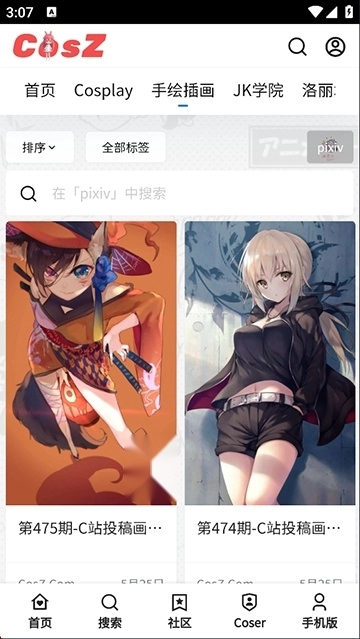 - 上传cos照片,找寻同好,欣赏各类二次元图片。