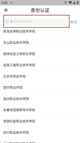 在学校选择页面,你可以借助顶部的搜索框直接输入学校名称进行查找,从而快速定位到自己的学校。