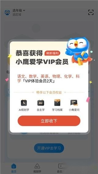 3、进入后可以看到平台给新用户免费赠送了各个学科的三天vip;