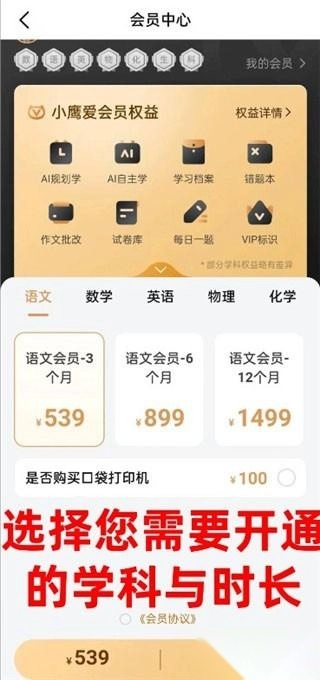 5、进入后选择需要开通的学科和时长,这里就可以看到vip需要多少钱了。