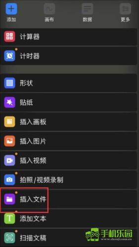 4、在添加中找到 插入文件 ,即可选择word文档导入
