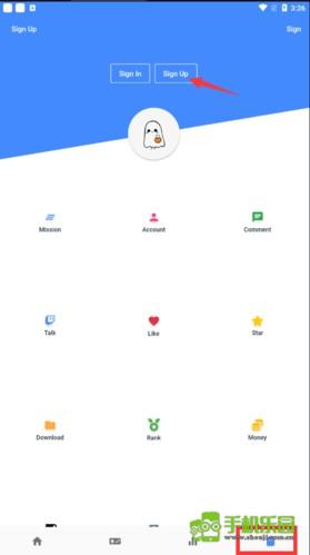 1、点击软件下方第四个小图标进入对应页面后,再点击小幽灵头顶右侧的按钮,即可进入注册页面。