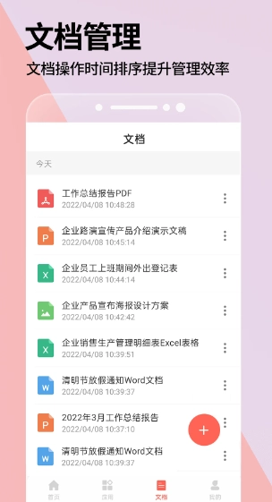 PPT手机版具备创建和编辑Word文档、Excel表格、PPT文档以及PDF文档的功能,同时支持导入手机本地存储的Word文档、Excel表格和PPT文档,以便进行编辑与修改操作。