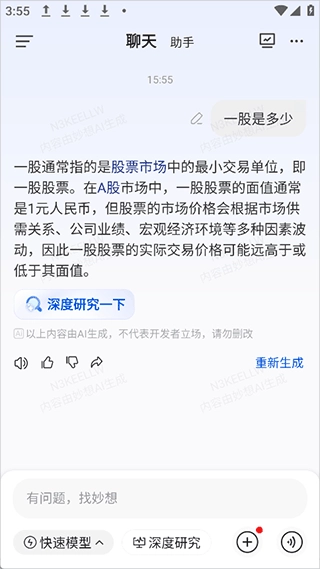 基于妙想大模型重磅打造的下一代智能金融终端——妙想投研助理,具备智能问答、研报总结、深度分析等各类投研辅助功能。