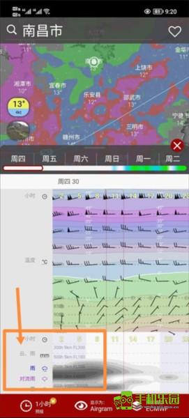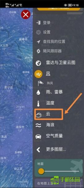 4、然后在点击自己所需要查看的地点,就能够在下方看到云层的相关信息了。