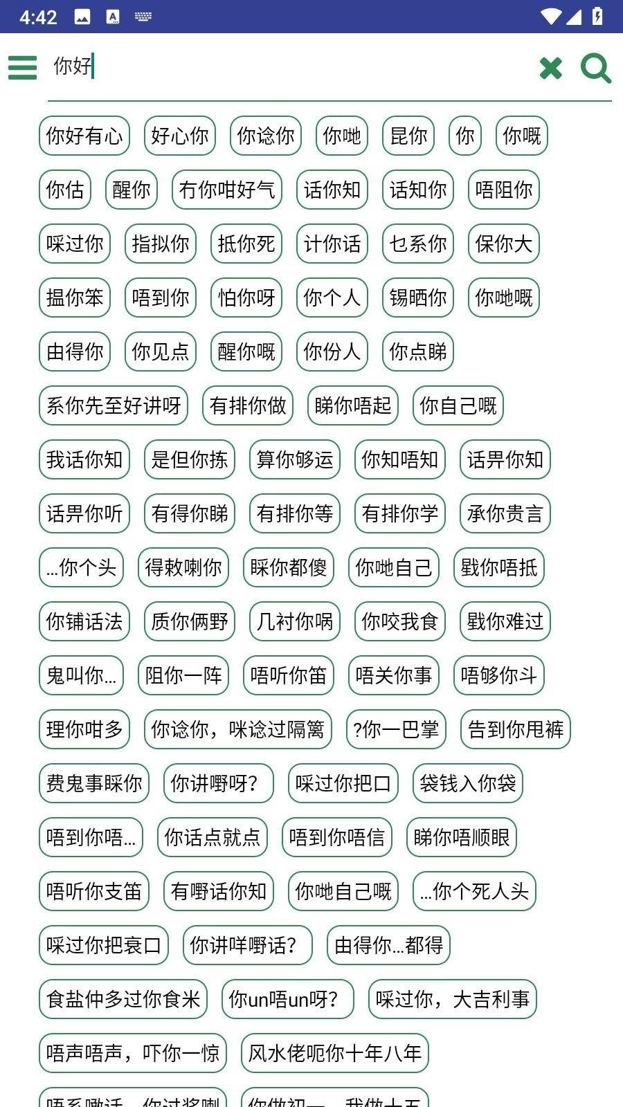 2、你可以输入想要查找的词汇对应的粤语版本,这里可以说是一部粤语词典大全。