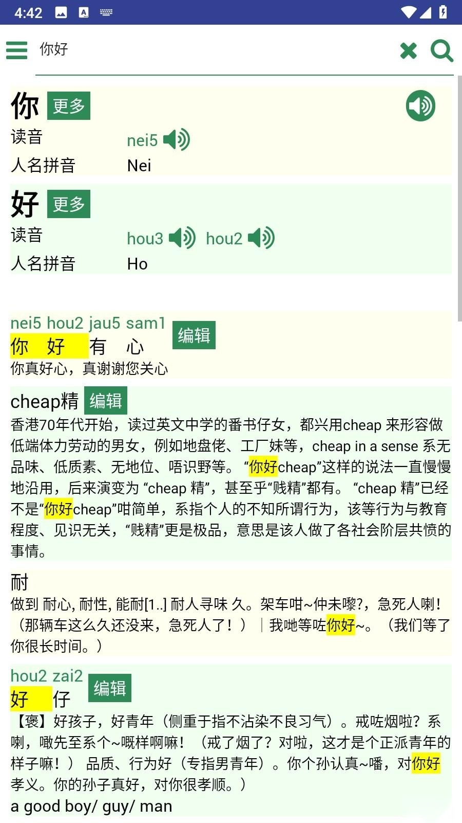5、支持繁体以及简体字的输入,支持查看仓颉码,而且还有粤语的注音以及解释翻译,支持发音的一键获取,全部都是免费的。