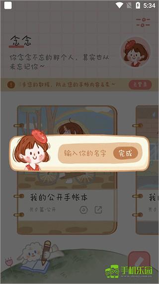 1、在手机上下载安装念念手帐APP并打开,第一次进入应用时,你可以给自己设置一个喜欢的昵称。