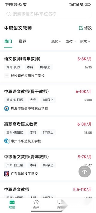 筛选出自己想要的教师职务,能利用求职中心的各种条件筛选自己想要的职位;