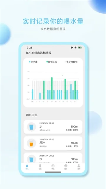 自动同步水杯饮水量与水温,随时掌握喝水情况。