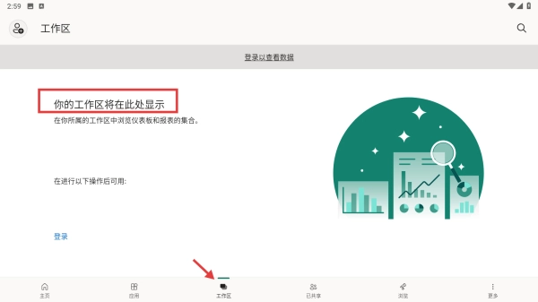 这个应用的底部设有多个功能板块。当你点击应用板块时,就能查看与你的应用相关的仪表盘和报表集合。需要注意的是,只有在登录之后,应用才会在此处显示出来。