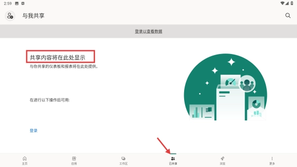 点击“已共享”板块,即可查看他人与你共享的仪表盘和报表;登录账号后,相关共享内容会在此区域展示。