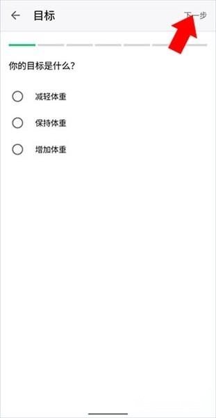 2、按照提示选择相应的目标并填写部分资料后点击右上角的下一步按钮