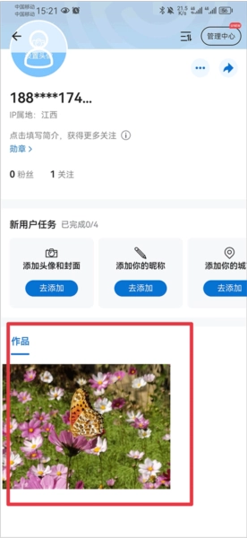 在管理中心界面中的作品栏中选择你要下架的图片