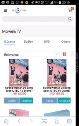 Yes24的CD/DVD以及其他韩流相关产品服务提供英文和中文版本。