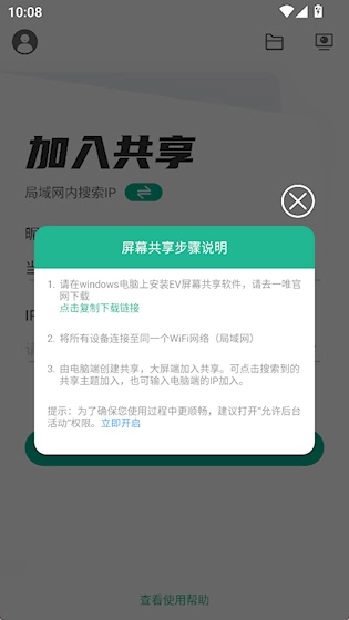 EV屏幕共享作为一款投屏工具,能在局域网环境中达成手机与电脑、大屏设备间的低延迟画面同步,它运用无线连接方式,无需数据线就能一键投屏,可应用于会议演示、教学展示等各类场景,并且支持高清画质传输,适合对延迟和画质要求较高的使用环境。
