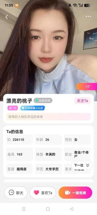 真人视频认证:用户通过实名认证或视频认证的方式,真实地展示自我。
