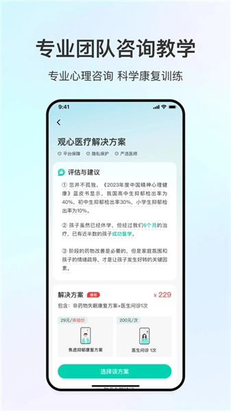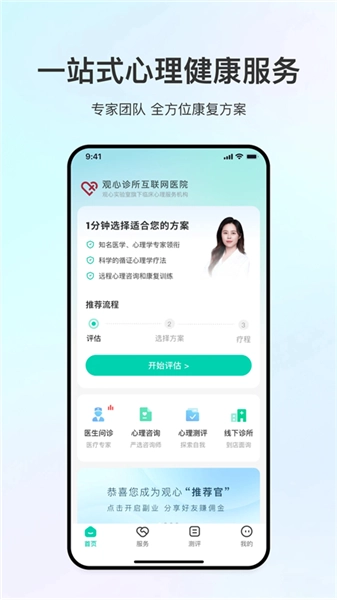 为用户提供系统化的非药物“心理数字疗法”一站式服务,帮助用户更便捷地在线完成心理咨询与问诊服务的购买、预约及体验流程。
