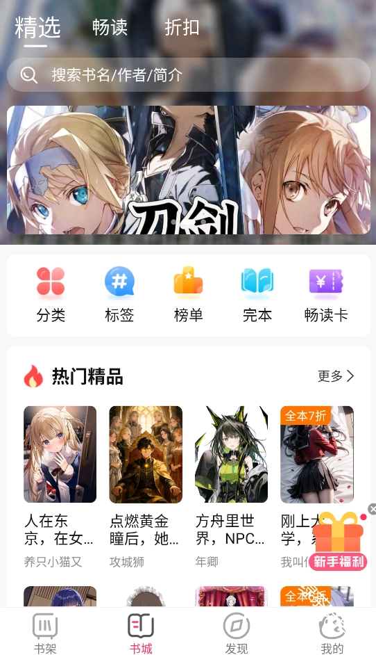 2、在书城界面,通过搜索或标签或分类或榜单等找到并点击想看的小说