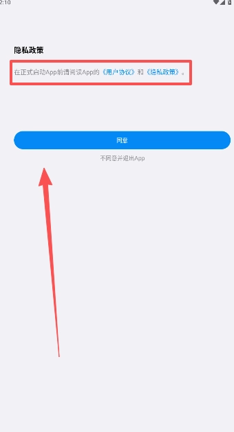 启动同意隐私政策和服务协议说明,点击同意打开。