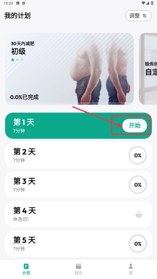 打开健身类应用,进入我的计划页面,找到30天内减肥初级计划。