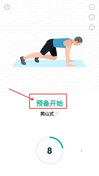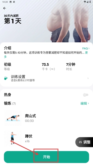 点击该计划第1天右侧的开始按钮,即可进入第1天的训练详情页面。