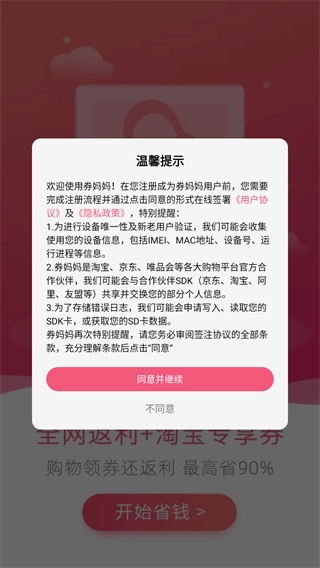 券妈妈优惠券是专注于折扣券服务的网上购物电商平台,它汇聚了各类产品的丰富优惠券资源。用户能一键检索各大电商平台的优惠券,凭借海量券源,可自由搜索并精准定位隐藏优惠券,快速找到目标商品的优惠信息,领取后下单即可享受折扣。此外,平台还覆盖全平台商城商品的折扣活动,用户只需点击一次,就能直接进入返利商城,购买商品时获得高额返利,进一步降低购物成本。